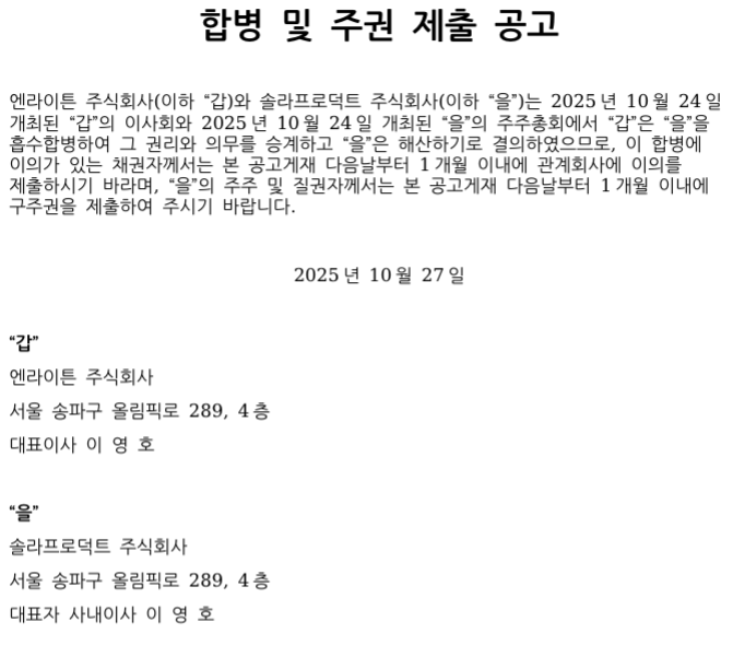 1. 주주확정기준일 :2025년 10월 1일